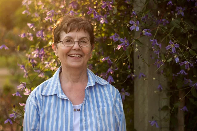 While my Dad was fishing with my kids, my Mom and I went for a walk in the gardens at the Forestry Farm Park in Saskatoon. She took me through the "Meditation Garden" and because I had my camera with me I made her pose for me.
