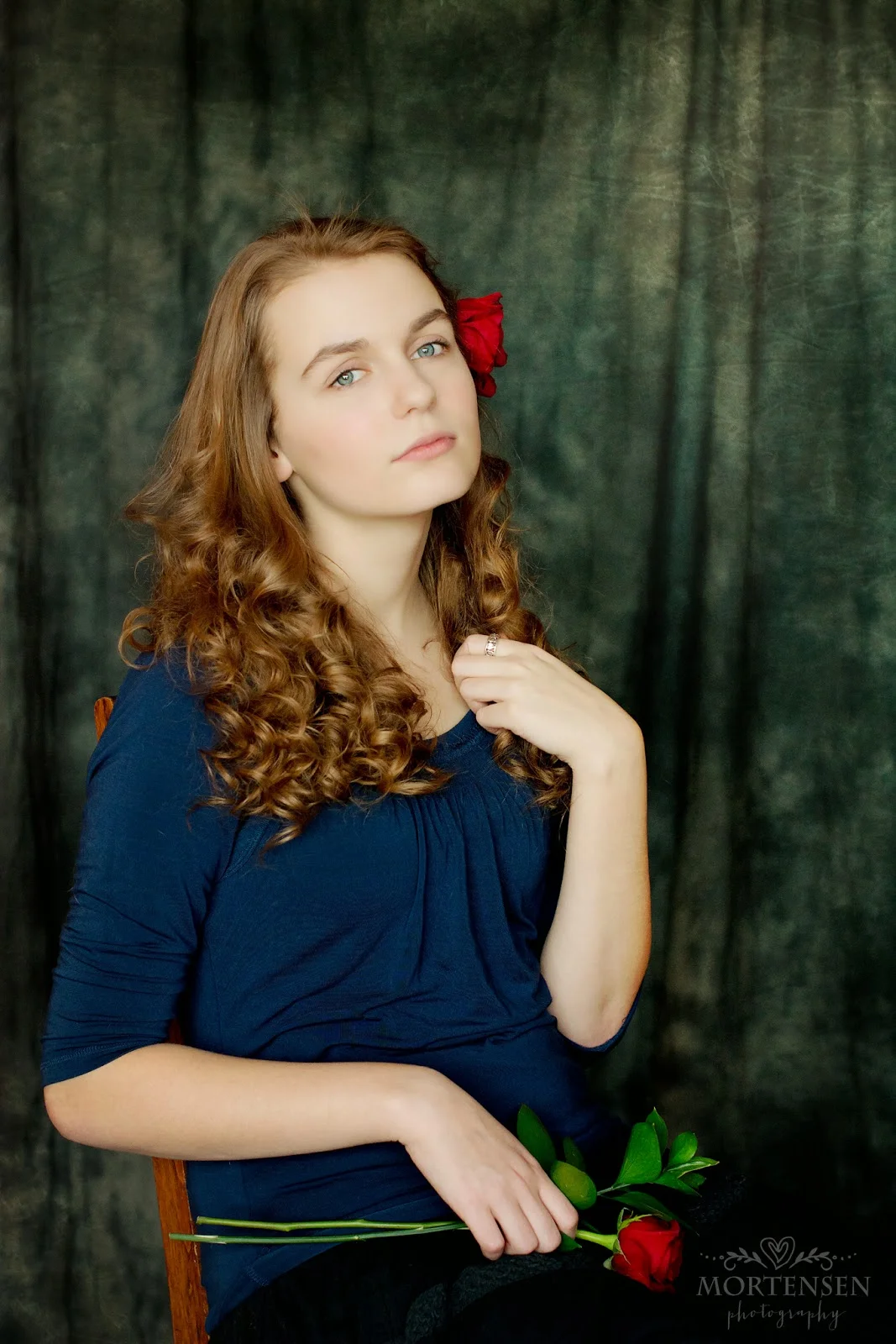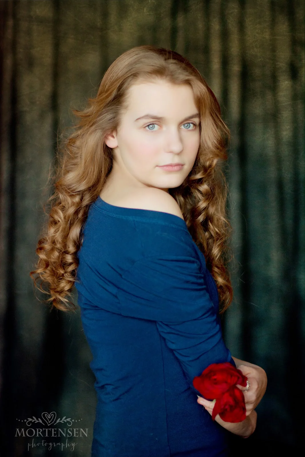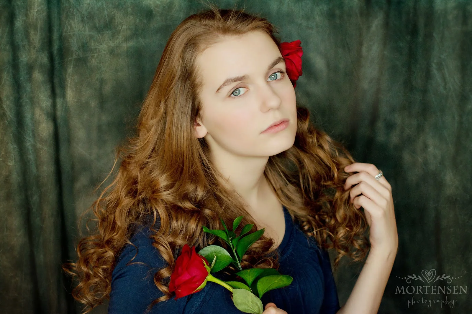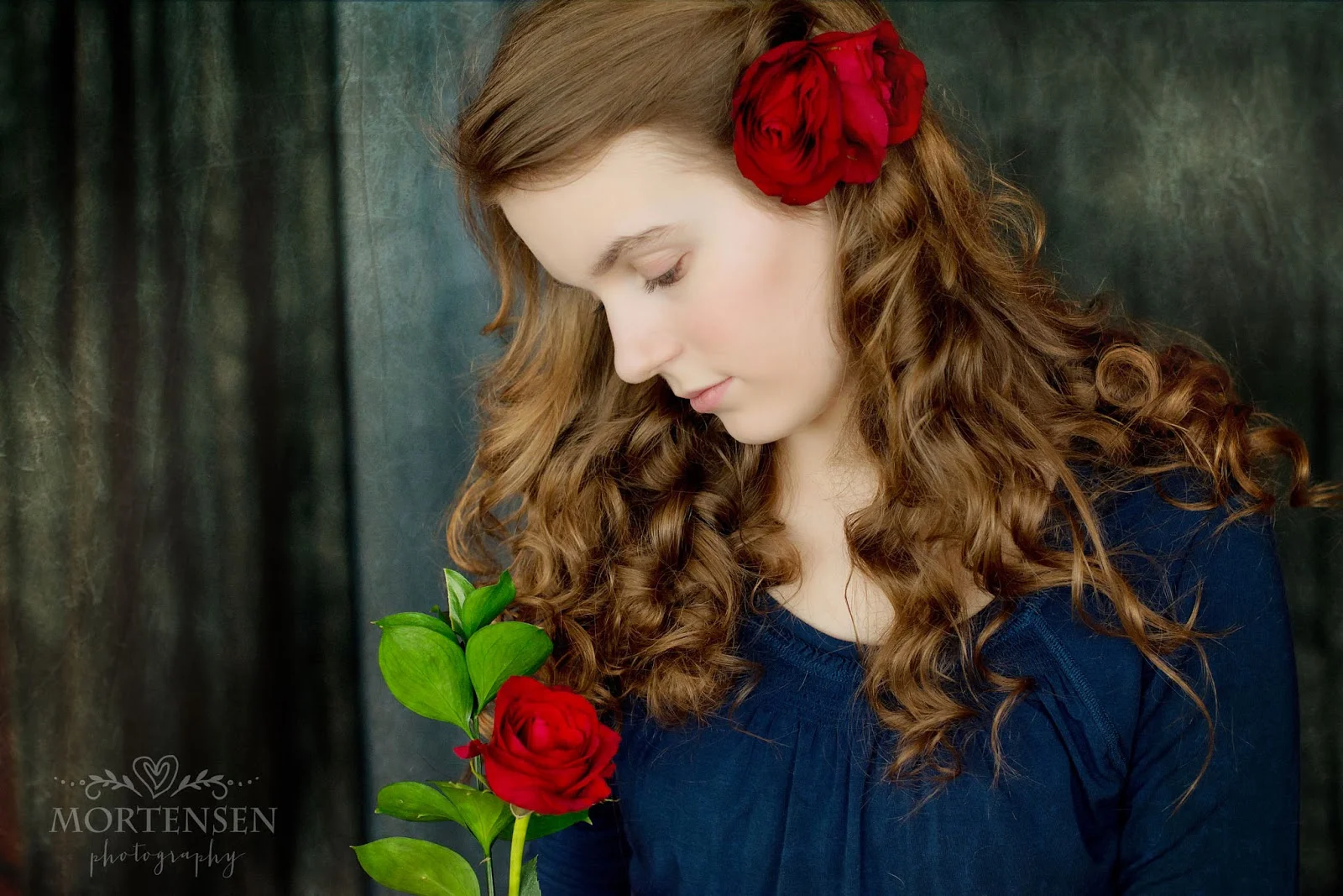 I still have my roses, so my daughter and I had some fun today. I was showing her some work by a 19th century painter and so we thought we would try to imitate him, with our own flair, of course. She loves doing her hair up and posing for me, and I love taking pictures and playing around in Photoshop. WE had so much fun, and got a really different look and feel. Kind of Renaissance.