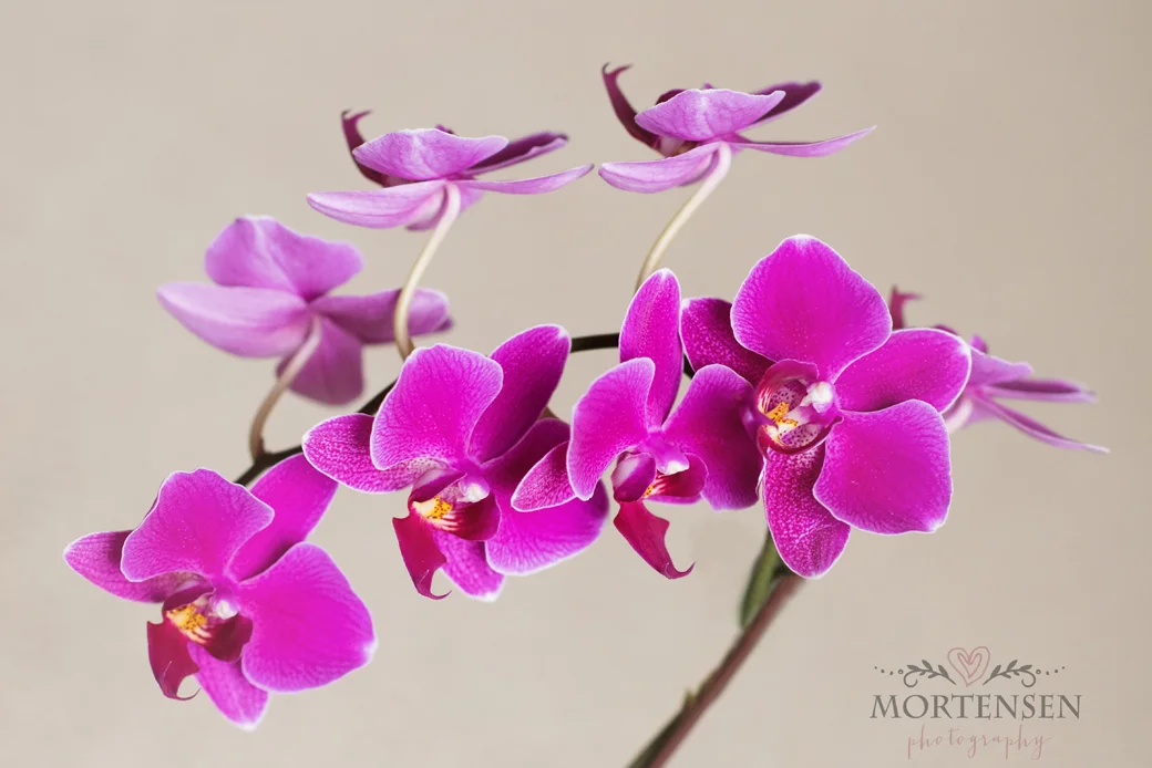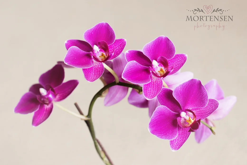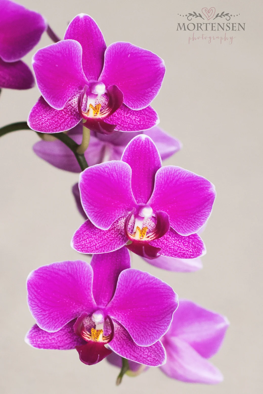 Now I know that orchids are not the official flower for August, but I've stopped following those rules a few months back. My mother-in-law has a beautiful orchid that is in full bloom and she wanted some photographs of it, so this will be my flower of the month photo. Orchids have a very interesting shape to them and such a beautiful, intense color! So, here they are, just for you Mom!