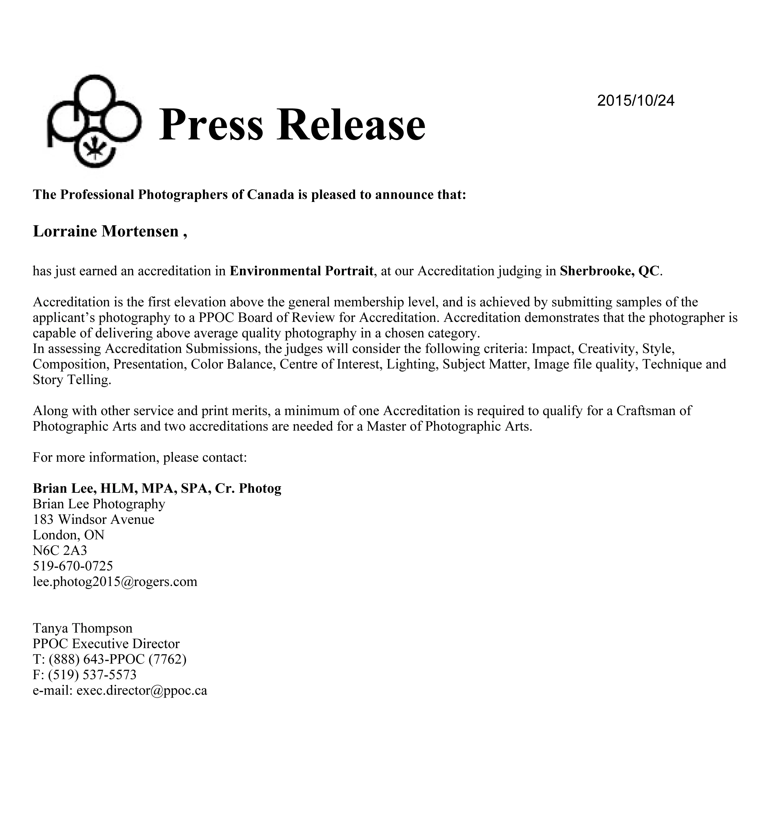 I'm looking forward to getting to know the PPOC better and working towards further accreditations and designations. Here are the 10 images I submitted and my letter of acceptance.