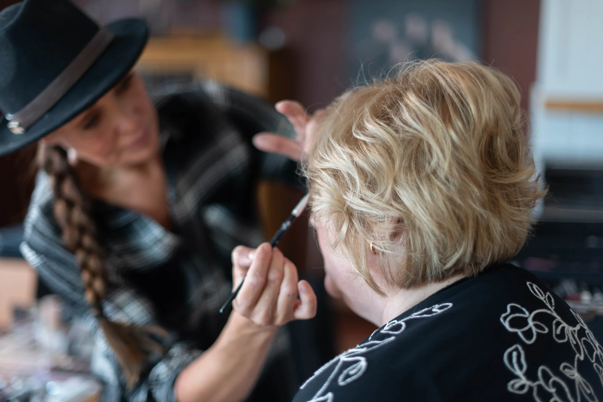 Kim had her hair styled at a local salon and her makeup professionally done by Rachel, my talented makeup artist.